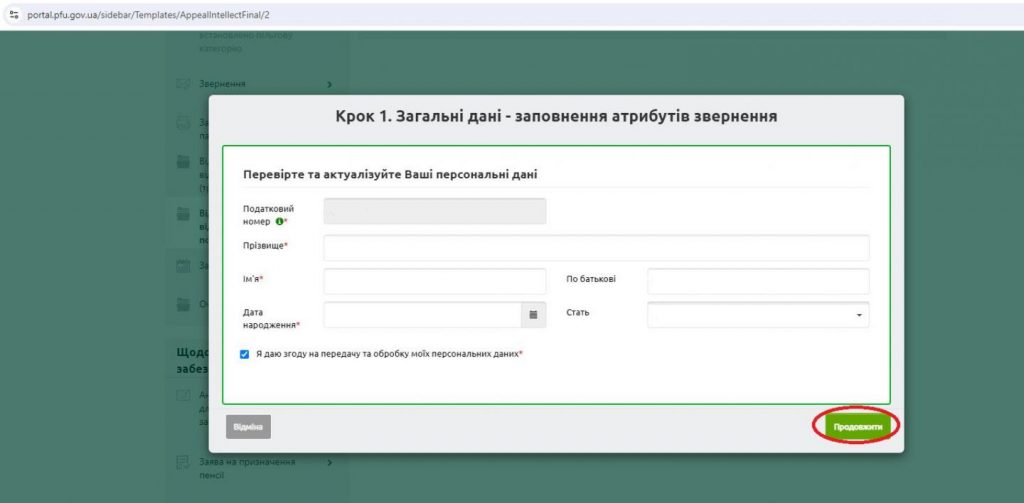 Покроковий алгоритм, як скористатися сервісом через вебпортал ПФУ.