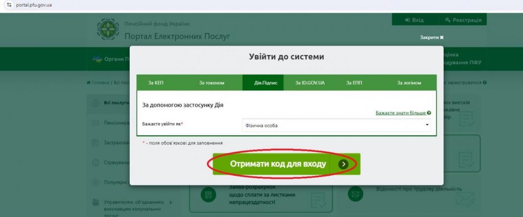 9. Вхід в особистий кабінет на вебпорталі ПФУ буде виконано автоматично.