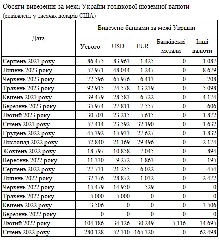 За даними НБУ, у серпні з України вивезли 86 млн доларів, що на 49% більше, ніж у липні (58 млн доларів).