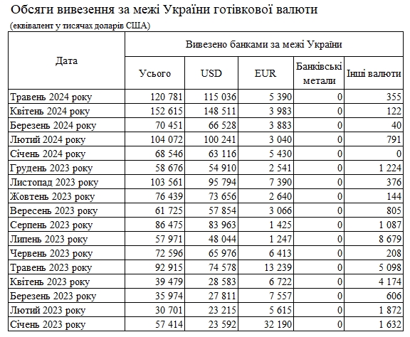 Обсяг готівкової іноземної валюти, яку банки ввезли до України у травні 2024 року, становив 1,176 млрд доларів. Це на 4% більше, ніж у квітні (1,126 млрд доларів).