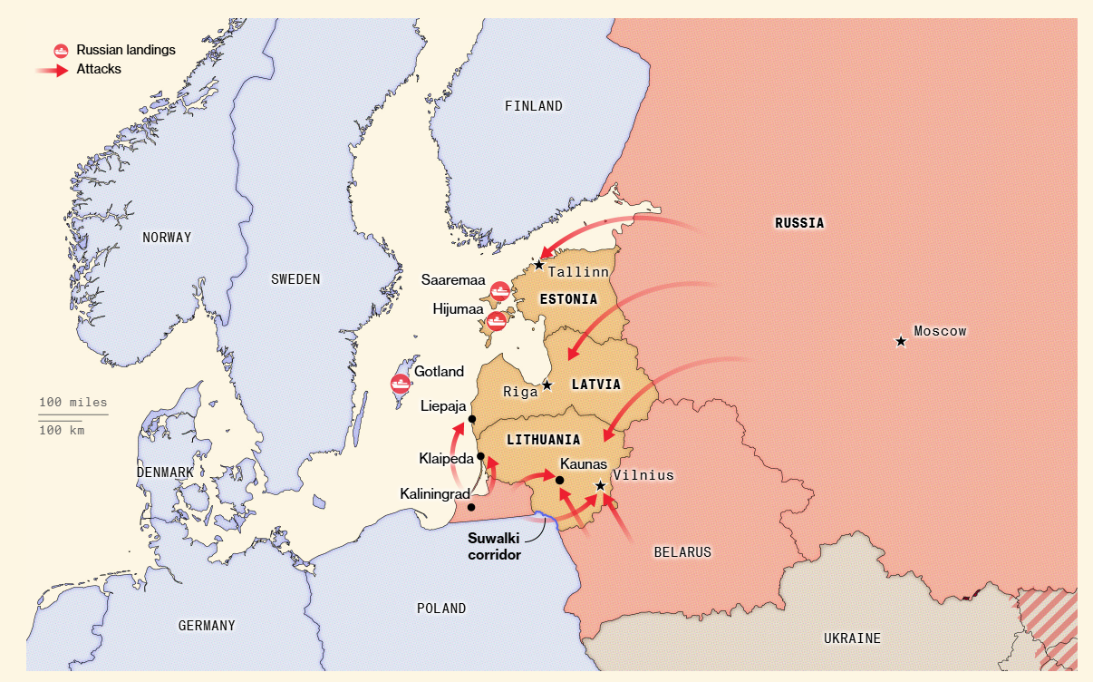 Невеликі, але стратегічно важливі, Естонія, Латвія та Литва - на передовій ризику. На їхній території проживають значні російськомовні громади, кордони з РФ і Білоруссю відкриті.