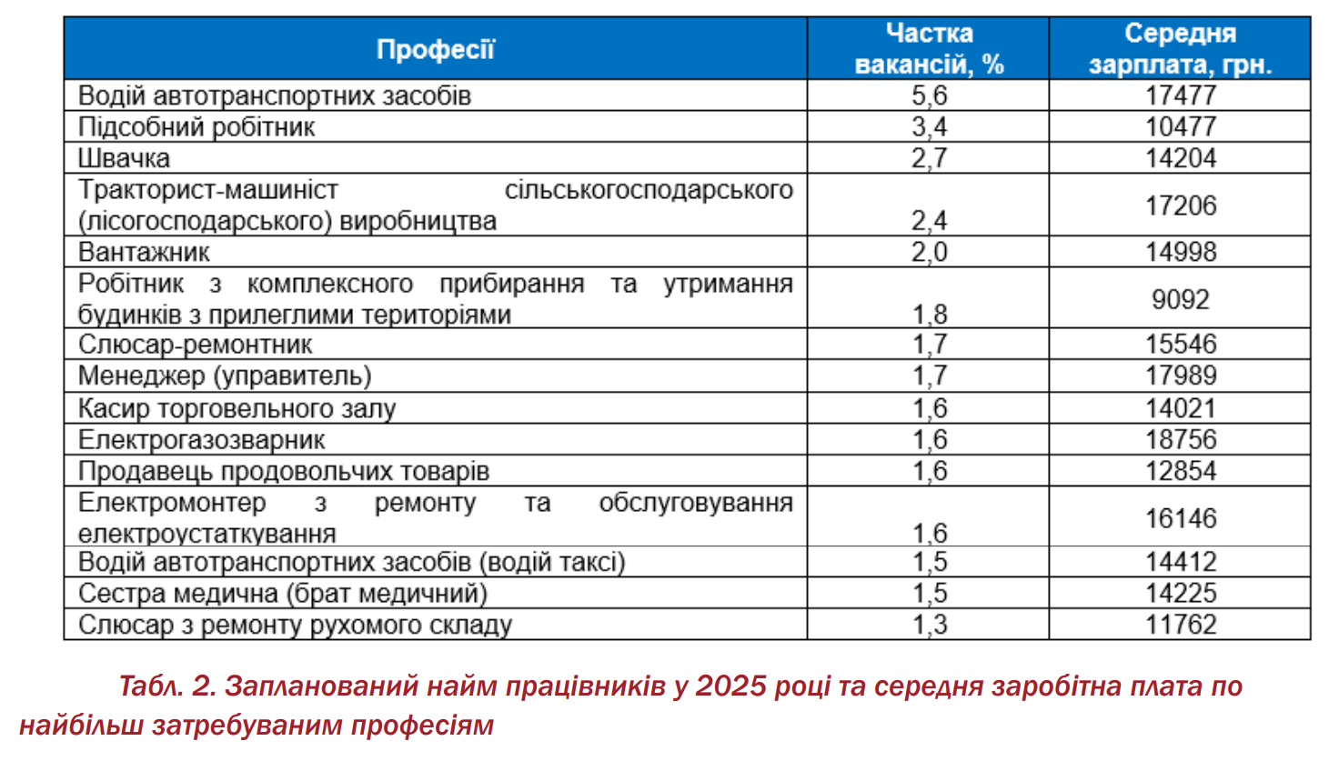 Менший попит спостерігається на працівників торгівлі та послуг (7,2%), керівників (6,2%), фахівців (6,2%), технічних службовців (3,8%) та кваліфікованих робітників сільського господарства (3,4%).