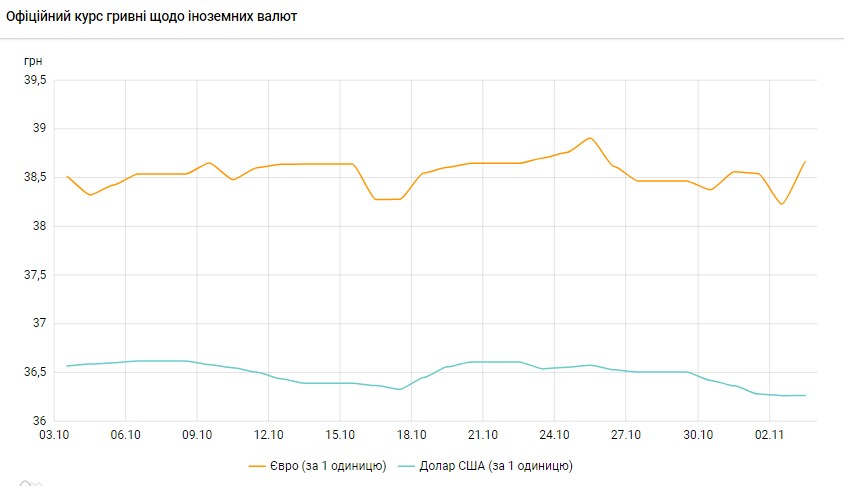 Курс євро становитиме 38,7278 гривень за 1 євро (+0,0575 грн).