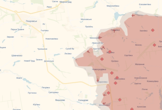 За даними британської розвідки, основні зусилля російських військ, як і раніше, зосереджені на Покровську на сході України. Росія, швидше за все, зайняла міста Гродівка, на схід від Покровська, та українці, на південь від міста. Російські війська залишаються приблизно за 8 км від Покровська.
