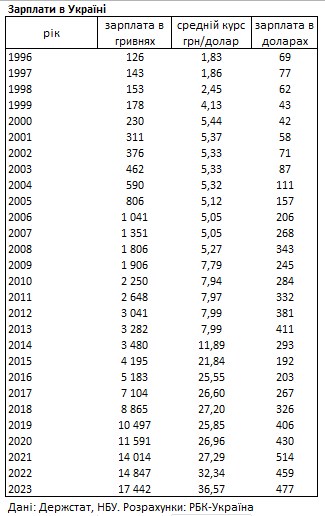 З огляду на офіційний курс НБУ зарплати українців за 2023 рік зросли на 18 доларів до 477 доларів.
