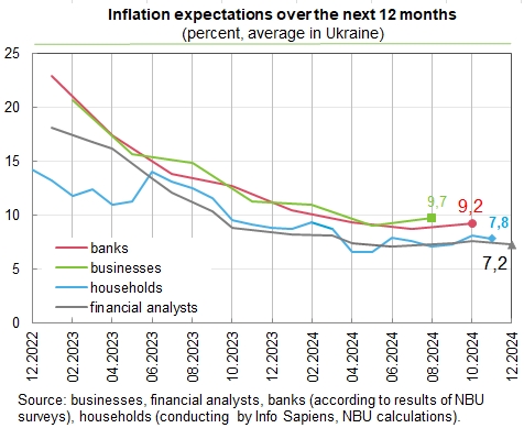 У НБУ очікують, що вже до кінця року інфляція може перевищити 10%, проте інфляція піде на спад навесні 2025 року, а наприкінці 2025 року становитиме 6,9%.
