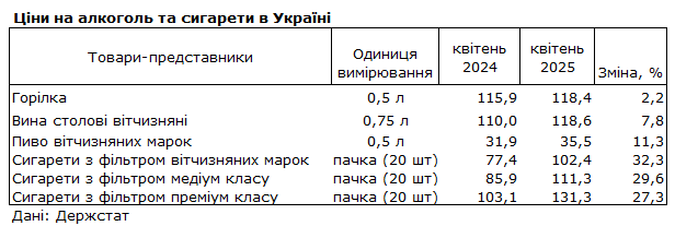 Сигарети займають 3,9% у споживчих витратах українців. На алкоголь українці витрачають 4,0%. Мінімальні ціни на алкоголь майже не підвищувалися з 2018 року, у зв'язку з чим ціни на нього майже не зростають.