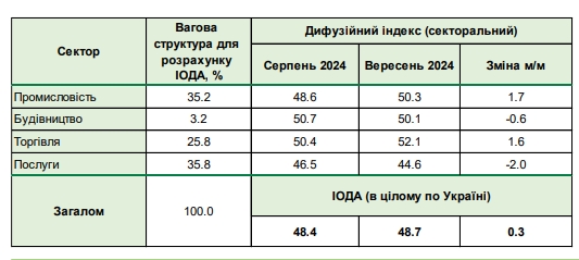 За даними НБУ, індекс очікувань ділової активності (ІОДА) у вересні зріс до 48,7 пунктів порівняно з 48,4 у серпні.