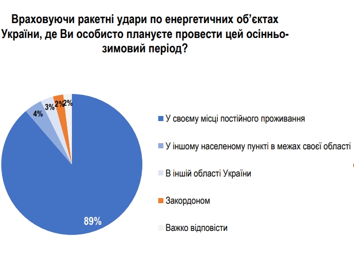 Майже 90% українців планують провести осінньо-зимовий період 2024 року на своєму постійному місці проживання.