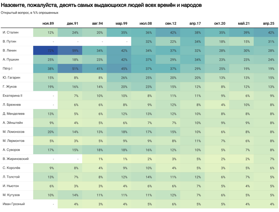 Результати опитування: найвидатніші люди всіх часів і народів (Росія, квітень 2025)