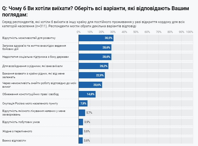 Серед причин бажання залишити Україну найчастіше називалися такі: