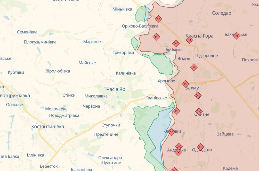Сили оборони продовжують видавлювати росіян на південь від Бахмута (фото deepstatemap.live)