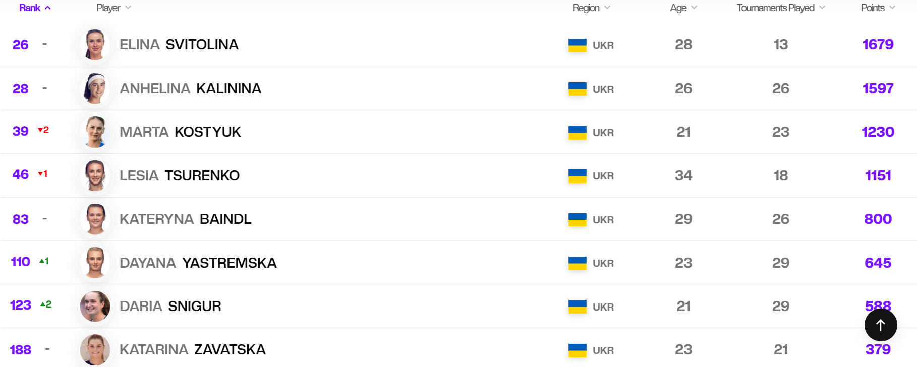 28-річна українка залишилася на 26-й сходинці в актуальному рейтингу професіоналок. На дві позиції нижче втрималася Ангеліна Калініна.