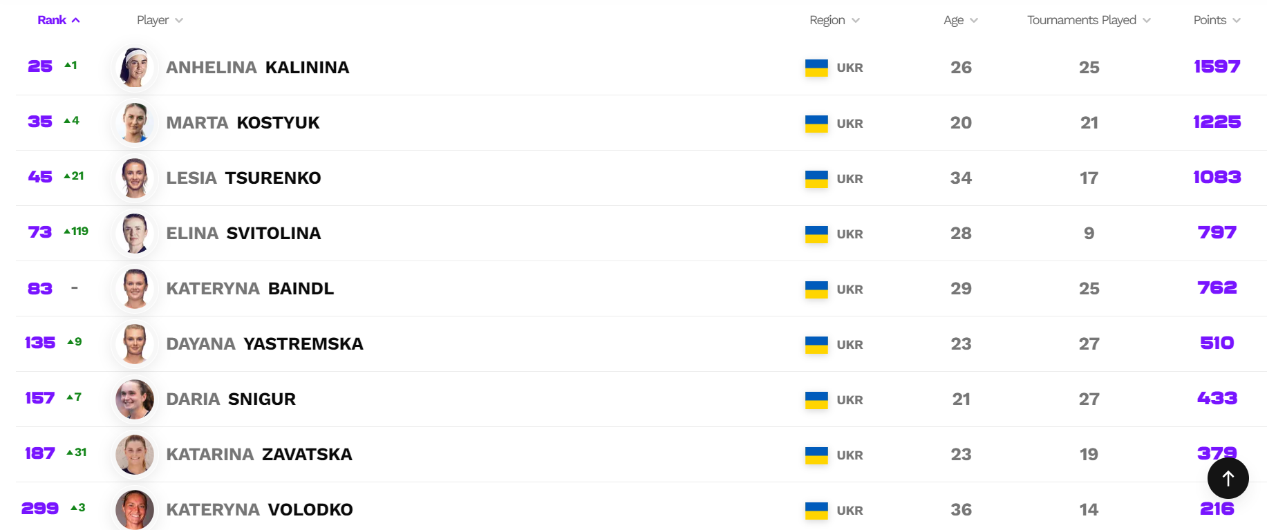 Першою ракеткою України залишилася Ангеліна Калініна. Вона піднялася вгору на одну позицію та замкнула топ-25.