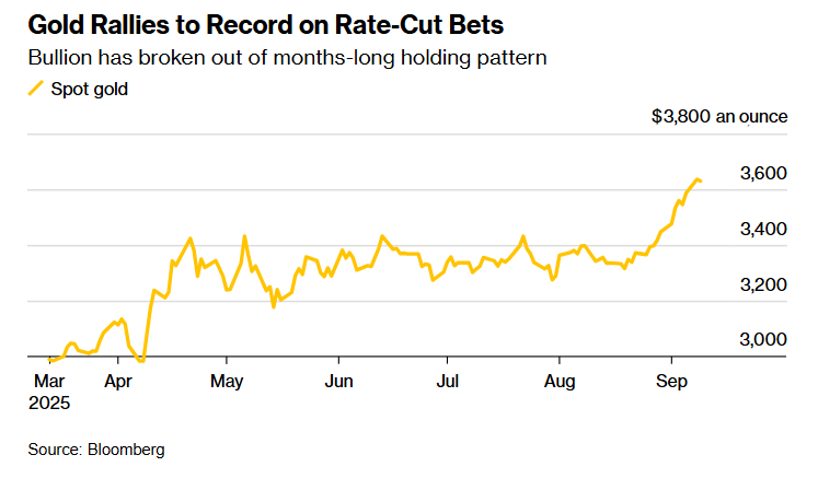 Котирування піднялися у вівторок 9 вересня на 0,3% і до 3647 доларів за унцію, перевищивши максимум, зафіксований напередодні.