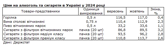 - столові вина українських марок подорожчали на 2,3% до 112,9 гривень за пляшку 0,7 літра,