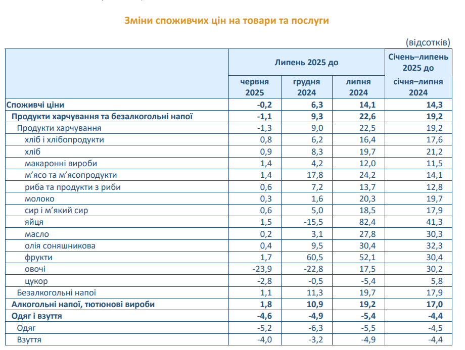 Річна інфляція в липні 2025 року сповільнилася до 14,1%, порівняно з 14,3% у червні.