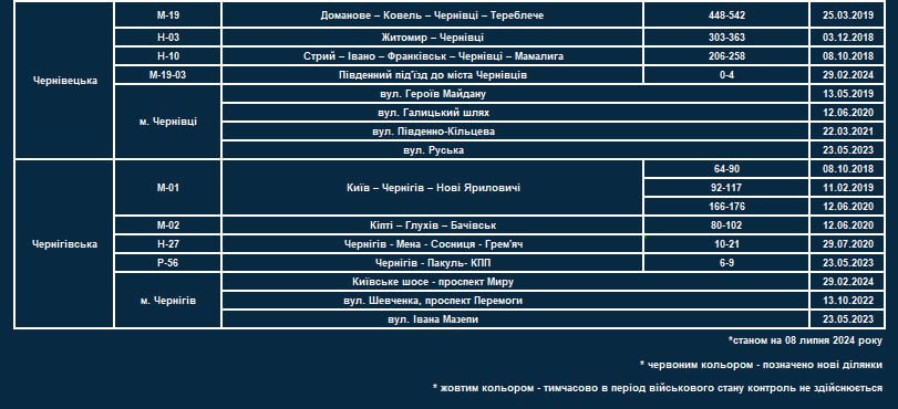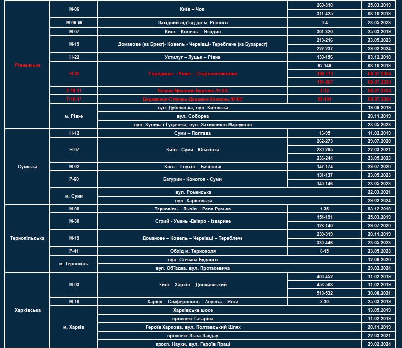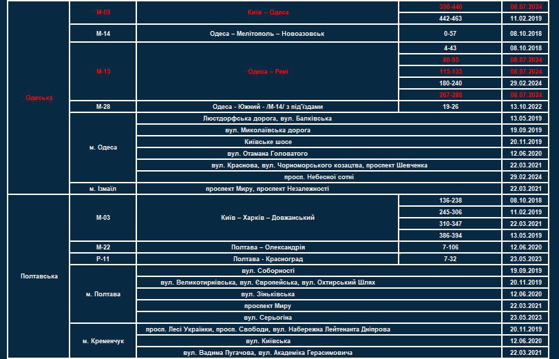 З урахуванням воєнного стану та результатів проведеного аналізу аварійності, до 333 ділянок внесені такі зміни:
