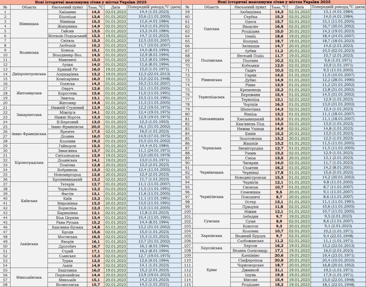 Фото: температурні рекорди у січні 2023 року (facebook.com/mammatocumulus)