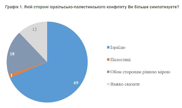 Переважна більшість українців (69%) симпатизують Ізраїлю у конфлікті, який спалахнув після нападу ХАМАС 7 жовтня та військової відповіді армії оборони Ізраїлю. Лише 1% симпатизують Палестині.