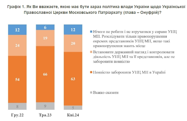 Зокрема, 63% вважають, що ця церква має бути повністю забороненою. Ще 20% зараз виступають за дещо м’якший підхід, що не передбачає повної заборони, але передбачає встановлення державного контролю та нагляду.