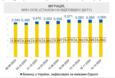 У першому півріччі 2024 року кількість мігрантів за кордоном зросла майже на 240 тис. - до 6,58 млн осіб. Кількість українських мігрантів упродовж ІІІ кварталу зросла майже на 200 тисяч, зростання тривало й на початку IV кварталу - до майже 6,8 млн осіб станом на середину жовтня 2024 року.