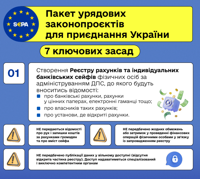 Як зазначили в пресслужбі, це передбачено пакетом законопроєктів, схвалених урядом. Документи готував Мінфін. Цей пакет спрямований на приєднання до системи банківських європлатежів SEPA.