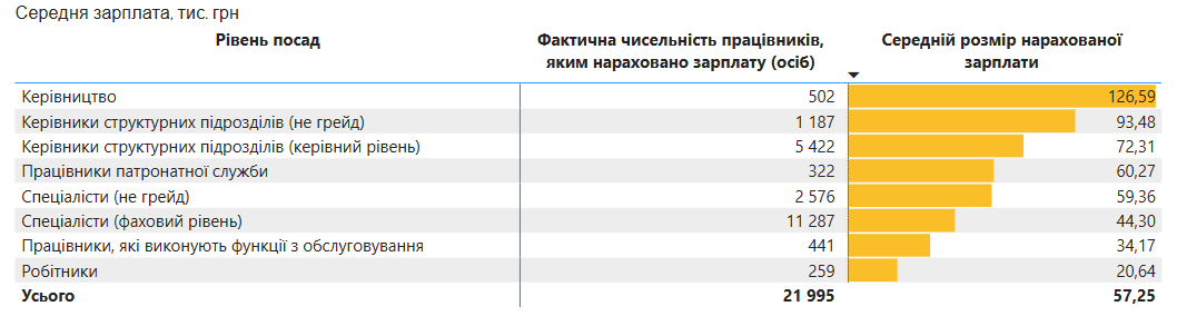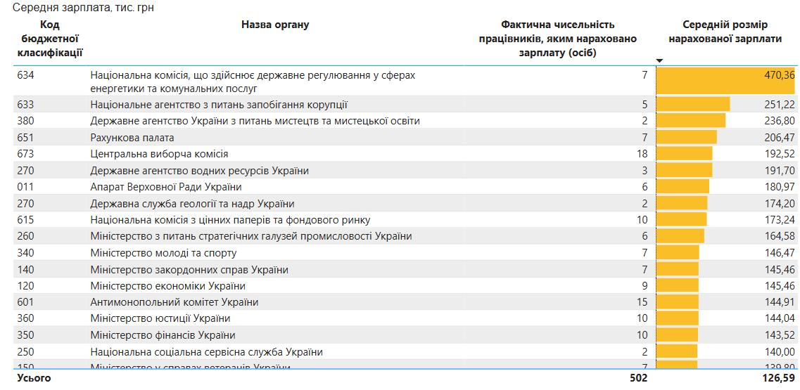 Середня зарплата керівництва відомств становить 126,6 тисячі гривень.