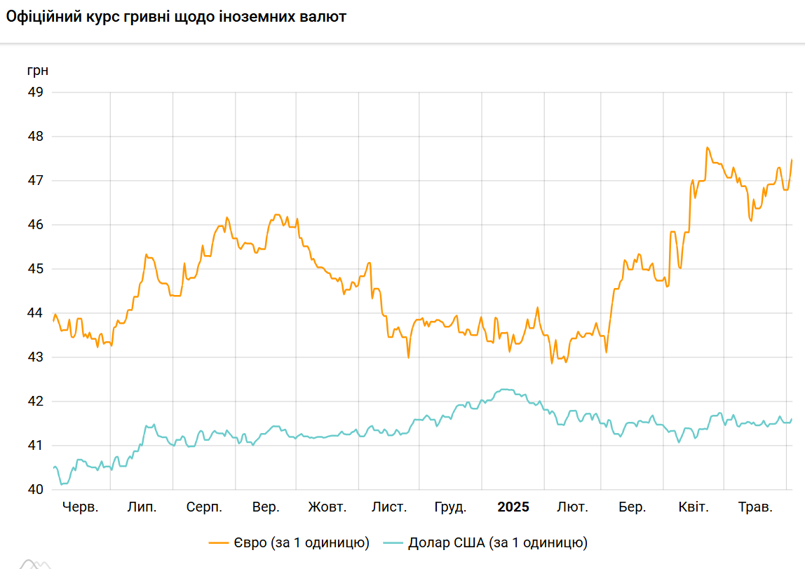 Офіційний курс євро становитиме 47,5032 гривень за 1 євро (+0,4292 грн).