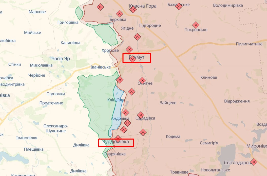 Під Бахмутом знову успіхи, але до оточення міста ще далеко (фото deepstatemap.live)