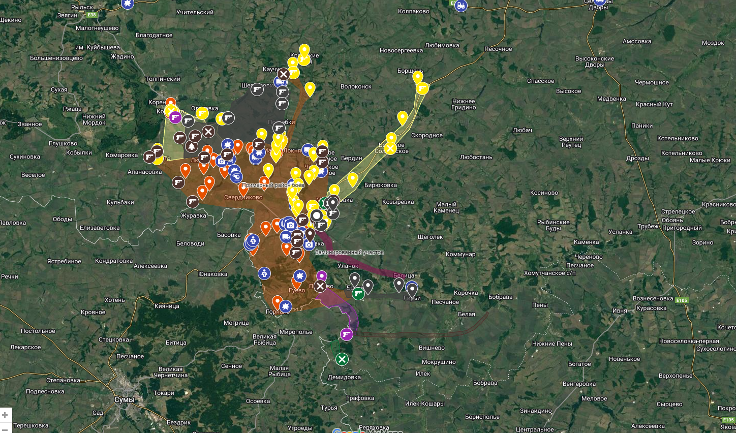 Варто зауважити, що станом на зараз карта бойових дій у Курській області виглядає наступним чином: