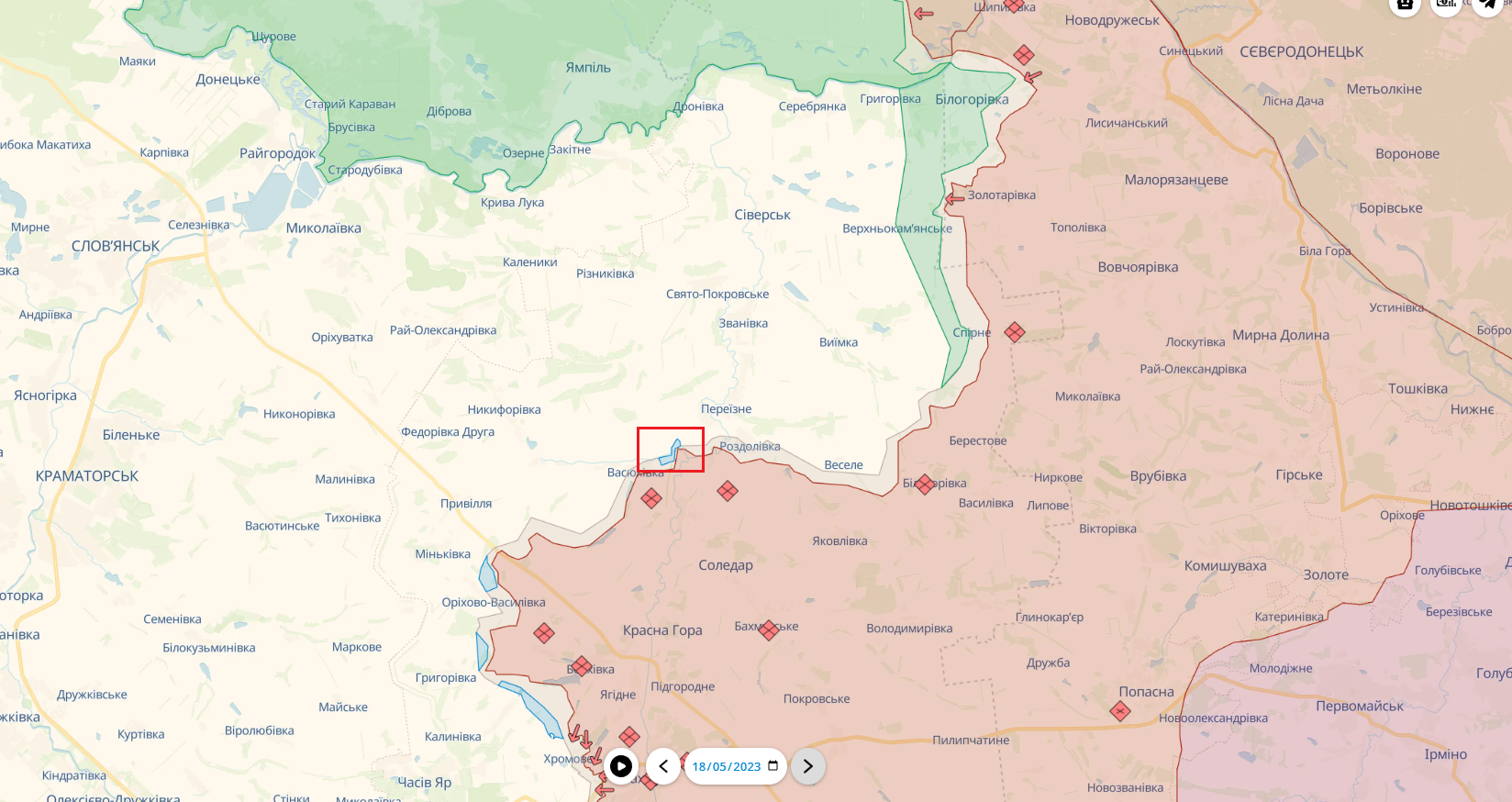 Також на карті можна помітити незначне просування бійців ЗСУ в районі села Кліщіївка, яке знаходиться на півдні від Бахмута.