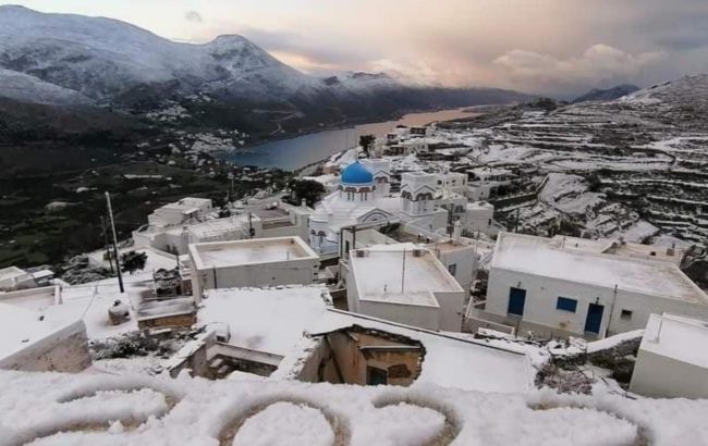 24.01.2022 - 11:17 Рідкісне явище за десятки років: курортні грецькі острови накрило сильним снігом