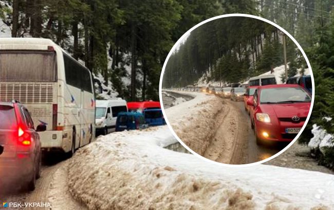 05.01.2022 - 14:12 Навала туристів. На Закарпатті фіксують кілометрові затори до популярної локації