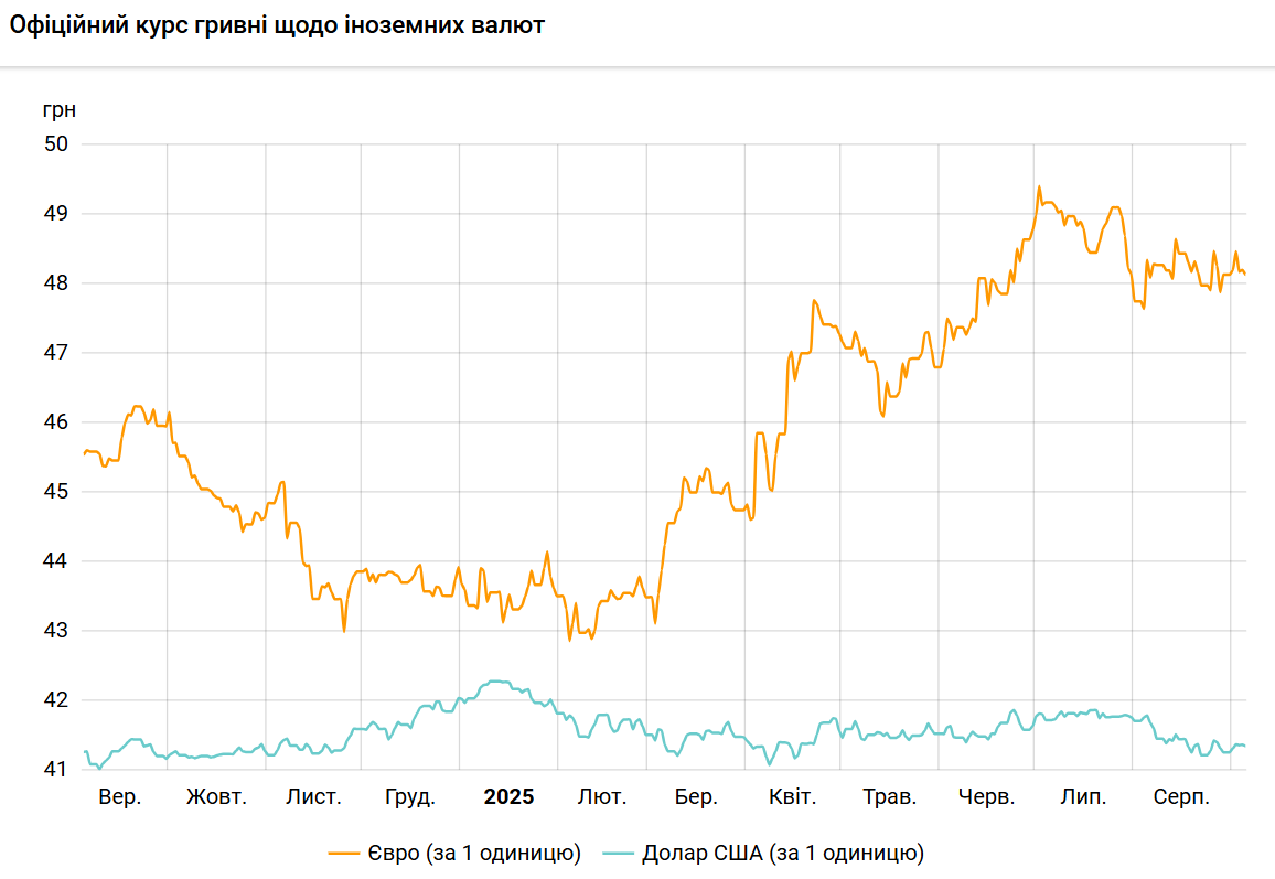 Официальный курс на 5 сентября 2025 года установлен на таком уровне: 41,3494 гривен за 1 доллар (-0,0225 грн).