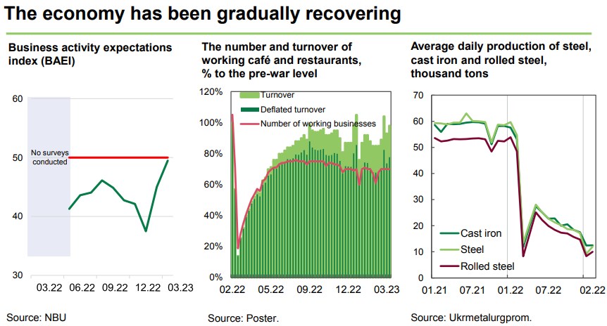 В течение февраля-марта экономическая активность восстанавливалась после приостановки этого процесса в конце 2022 года (из-за энергетического террора со стороны РФ).