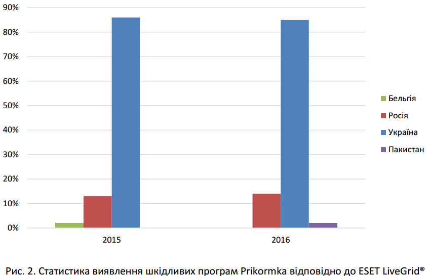 Як зазначається, шкідлива програма, яку продукти ESET детектують як Win32/Prikormka, залишалася активною і непоміченою експертами з безпеки, починаючи із 2008 року, а пік її поширення припав на третій квартал 2015.