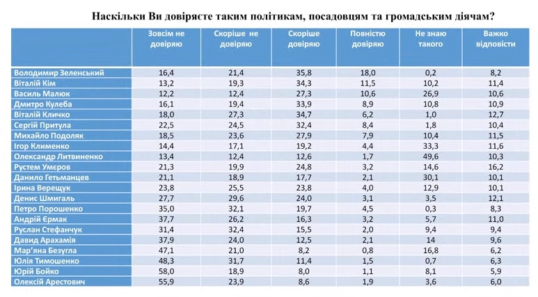 Кому больше всего доверяют украинцы: рейтинг политиков, чиновников и общественных деятелей