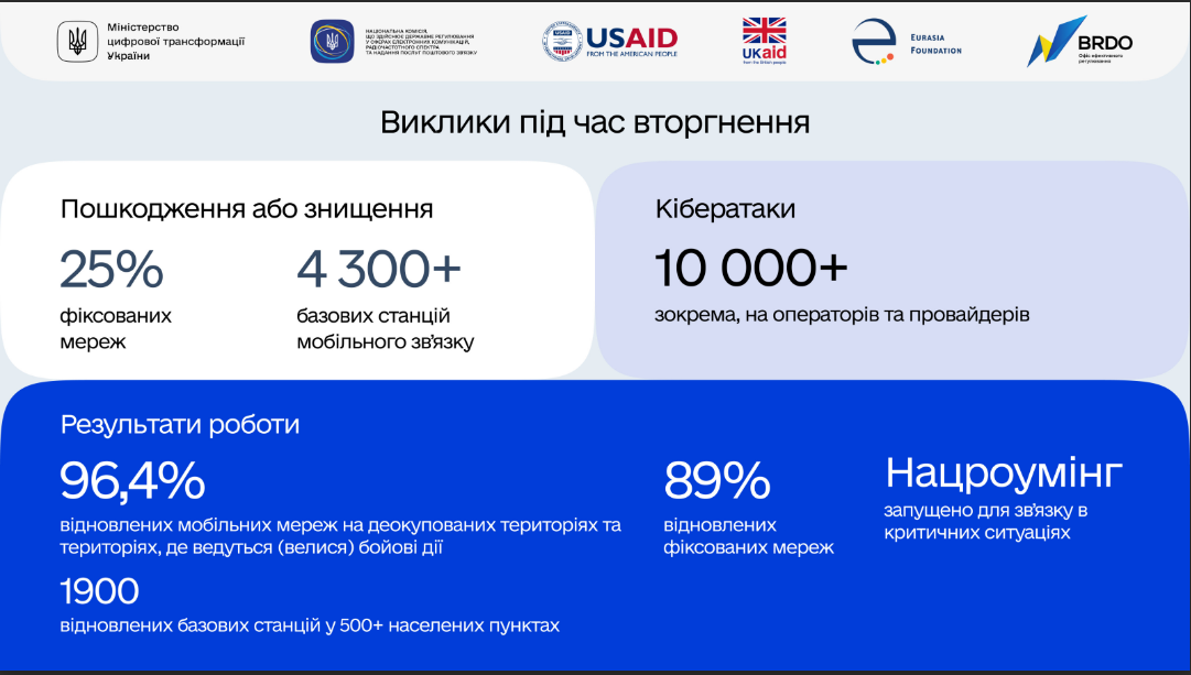 Напомним, по оценкам Всемирного банка, по состоянию на конец 2023 года война нанесла ущерб сектору электронных коммуникаций Украины на 2,3 миллиарда долларов. По данным, озвученным вице-премьер-министром по инновациям, развитию образования, науки и технологий — министром цифровой трансформации Михаилом Федоровым, в общей сложности повреждены или полностью уничтожены 25% фиксированных сетей и более 4 тысяч базовых станций мобильной связи. Ведь только вражеские войска заходят на территорию Украины, первое, что они хотят сделать, — лишить украинцев связи и создать информационный вакуум.