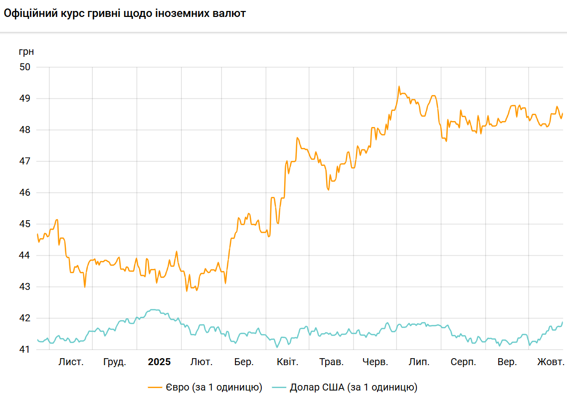 Официальный курс на 24 октября 2025 года установлен на таком уровне: 41,897 гривен за 1 доллар (+0,1420 грн).