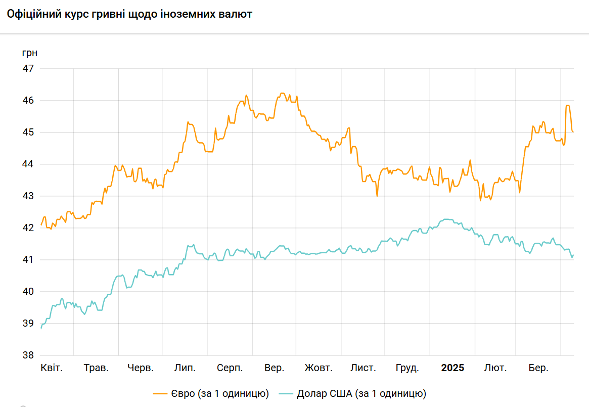 Официальный курс евро составит 45,0258 гривен за 1 евро (-0,0274 грн).