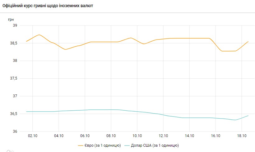 Официальный курс гривны к доллару на 18 октября 2023 года установлен на таком уровне: 36,4507 гривен за 1 доллар (+0,1210 грн).