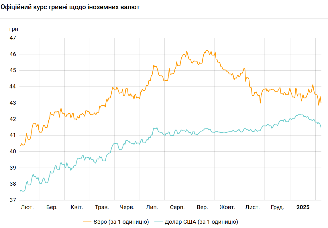Это минимальный уровень с 9 декабря 2024 года (41,4446 грн/доллар).
