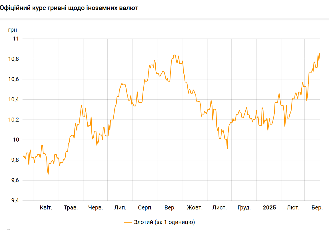 Официальный курс на 19 марта 2025 года установлен на таком уровне: 10,8603 гривен за 1 злотый (+0,0755 грн).