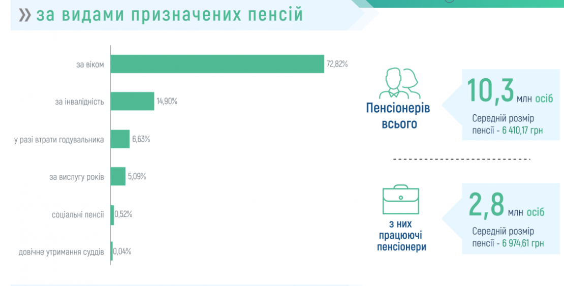 По данным ПФУ, в июле 2025 года средний размер пенсий составил 6 410,17 гривен, у работающих пенсионеров - 6 974,61 гривен.