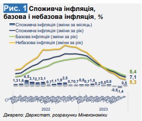 "В целом рост цен оставался в тренде, который соответствует показателям инфляционной динамики и таргетам мирного времени - с начала года потребительская инфляция составляет 3%, а годовые темпы замедлились до 7,1% (с 8,6% в предыдущем месяце)" , – говорится в документе.