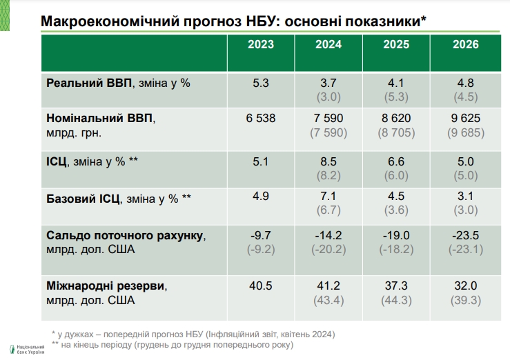Кроме того, НБУ прогнозирует инфляцию в 2025 году на уровне 6,6% (предыдущий прогноз - 6,0%), в 2026 году инфляция упадет до 5,0% (предыдущий прогноз - 5,0%).