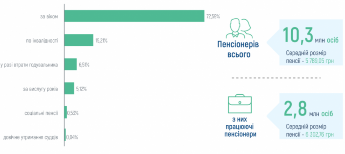 По данным ПФУ, средний размер пенсий составил 5 789,05 гривен, у работающих пенсионеров - 6 302,76 гривен.
