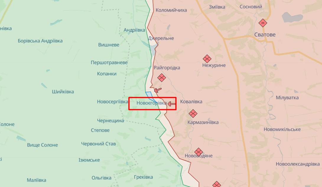 Село Новоегоровка под Сватовым остается эпицентром на Лимано-Купянской оси (фото deepstatemap.live)
