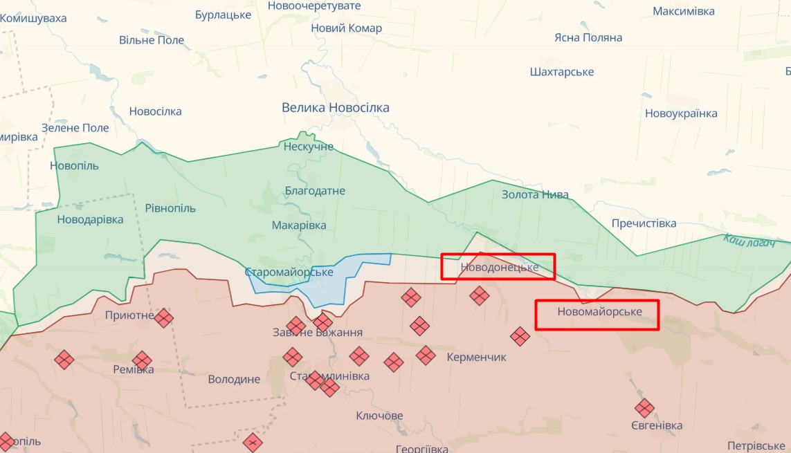 Новодонецкое и Новомайорское становятся "горячими точками" на южном фронте (фото deepstatemap.live)